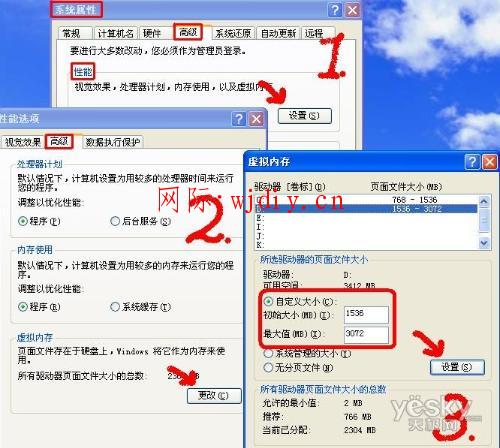 3、定義虛擬內存,一般默認的虛擬內存大小是取一個范圍值,最好給它一個固定值,這樣就不容易產生磁盤碎片,具體數值根據你的物理內存大小來定,一般為物理內存的1.5--3倍;但也可最小值設為物理內存的1.5--2倍,最大值為物理內存的2--3倍。