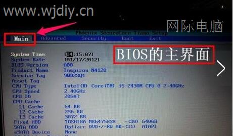 4,剛進(jìn)入BIOS時(shí),默認(rèn)的是Main這一項(xiàng),這里主要是設(shè)置時(shí)間,和一些硬件的顯示,我們不要?jiǎng)舆@里面的選項(xiàng)。