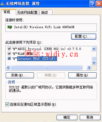 4)選擇無(wú)線(xiàn)網(wǎng)絡(luò)連接的“TCP/IP屬性”,并將其IP地址和DNS改為自動(dòng)獲取。