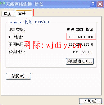 三、此時(shí)查看無(wú)線(xiàn)連接是否獲取到了IP地址,如下圖,連接成功后動(dòng)態(tài)獲取到一個(gè)IP地址