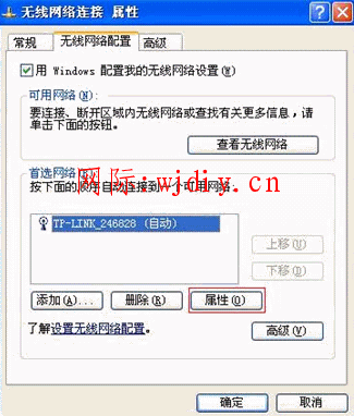 3)單擊屬性按鈕,進(jìn)入無(wú)線(xiàn)網(wǎng)絡(luò)連接屬性界面。