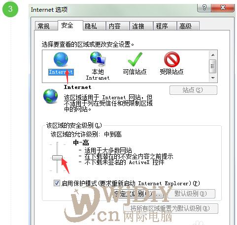 第二步:調(diào)整IE瀏覽器訪問級(jí)別;